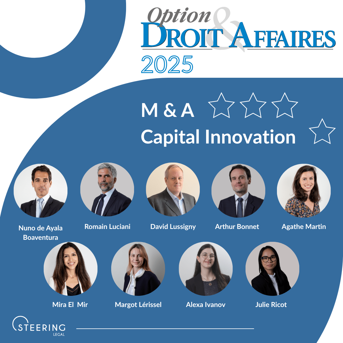 M&A Department, headed by DE AYALA BOAVENTURA Nuno, Olivier Guinard, Florian Guais and BELLILCHI Alice, was ranked “Excellent” in the category “Transactions up to €75M” by[…]