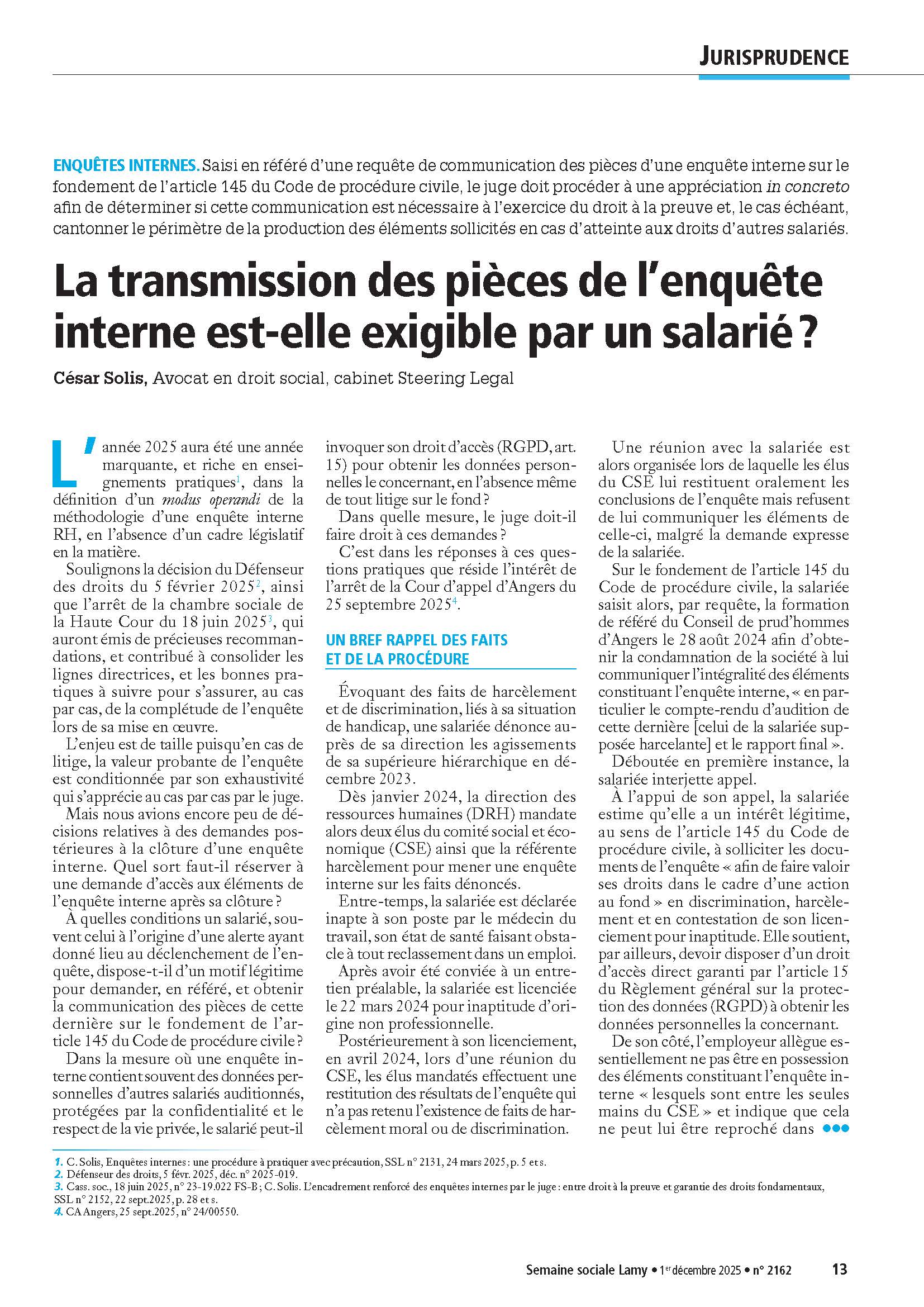 20251204 Extrait Semaine Sociale Lamy 1 decembre 2025 catherine david | 4 de dezembro de 2025 ← Return to Investigações internas de RH ‹